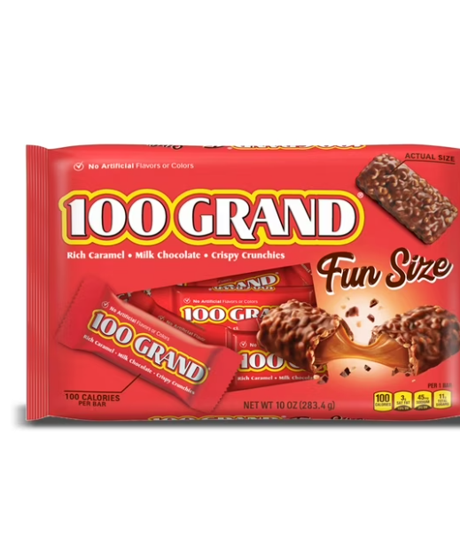 While you can purchase regular 100 Grand bars, the fun size versions are ideal for candy lovers. These petite, individually wrapped rectangles with wavy edges make portion control a breeze. You can enjoy one decadent piece at a time.