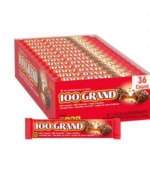 100 Grand bars can be found at most grocery stores, convenience stores, vending machines, and online retailers. The bars come in different sizes like regular, king size, and fun size.